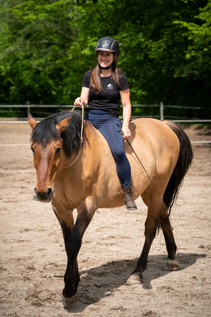 Meine Leidenschaft für Pferde begleitet mich bereits seit meiner Kindheit, als ich mit vier erste Reiterfahrungen auf dem gescheckten Shettlandpony „Charly“ machen durfte. Ab da war klar, das Pferde in meinem Leben immer eine Rolle spielen sollten. Nach mehreren Jahren im Voltigieren und klassischen englischen Reiten, wechselte ich zur Reiterpension Marlie. Dort lernte ich nicht nur einen anderen Ansatz im Umgang mit Pferden kennen, der meine Arbeit heute maßgebend beeinflusst, sondern entdeckte während meines Praktikums auch meine Begeisterung für und Freude am Zusammenbringen von Pferden und Menschen.